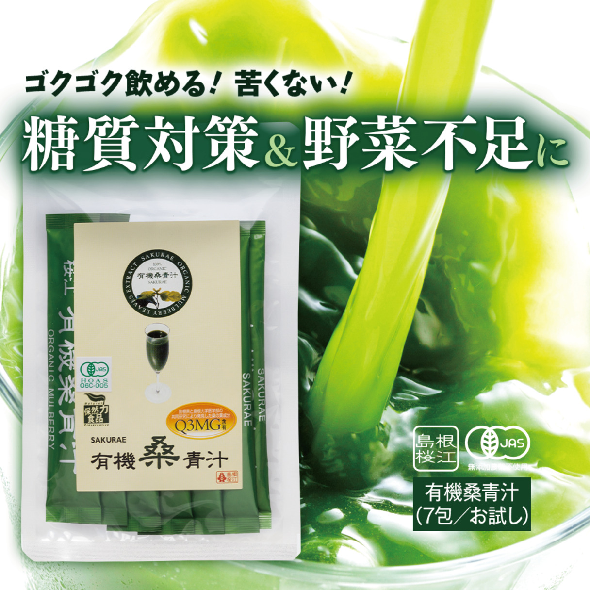【フードロス対策50%OFF】定価:1296円/名称 有機桑青汁/原材料名 有機桑の葉(島根県産)、デキストリン/内容量 21g(3g×7スティック)/賞味期限 製造日より2年/保存方法 高温多湿、直射日光を避けて保存してください。 【カタログ番号】17 ※しまね有機ファームグループ