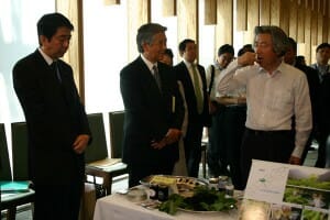 小泉内閣総理大臣(当時)や安倍内閣官房長官(当時)をはじめ、多くの方々が桑茶を試飲、大変喜んでいただきました。